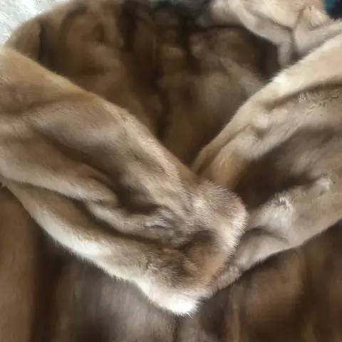 Abrigo de mink hecho en Rusia muy elegante solo 2 puestas largo 65 centímetros bolsas a los lados