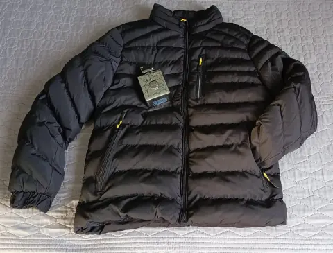 CHAMARRA NEGRA HOMBRE MEDIANA NUEVA. 1LE FALTA EL EMPAQUE ORIGINAL2NO TIENE DETALLES3SOLO SE USÓ CUANDO ME LA PROBÉ