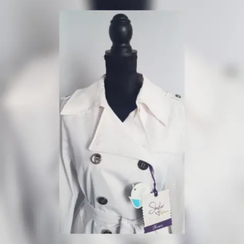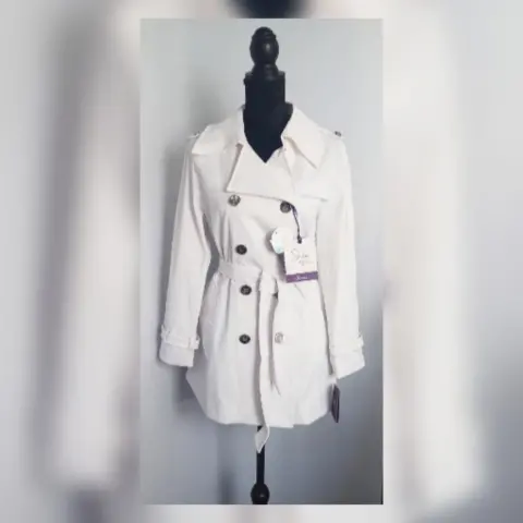 Gabardina lightwear (water resistant/breathable) tono BLANCO POLAR, cuello clásico c/solapa muesca, charreteras en hombros c/botonadura, cierre p/botonadura doble, 2 bolsos laterales vivo c/solapa, 1/2 solapa antitormenta delantera, solapa antitormenta trasera, manga larga terminada en tiras c/hebilla, cinturón mismo tejido p/mejor ajuste y forro interior. Talla M. Dimensiones cms: 47 hombro, 52 axila, 48 cintura, 59 zona baja, 76 largo, 59 largo manga. 60% poliéster, 37% algodón, 3% elastano. Para lavado en seco.***Prenda tratada con nanotecnología que le permite soportar lluvias de ligeras a medias y ser totalmente transpirable y ligera.***