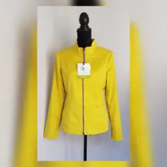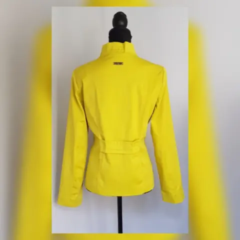 Gabardina lightwear (water resistant/breathable) color VERDE LIMA, cierre p/cremallera, cuello Perkins, 2 bolsillos vivo c/cremallera, tira trasera y forro de fantasía interior. Talla M. Dimensiones: 39 hombro, 53 axila, 48 cintura, 55 zona baja, 62 largo, 61 largo brazo. 50% poliéster, 37% algodón, 3% elastano. P/lavado en seco.***A pesar de que en las fotografías se aprecia la gabardina en color amarillo, el color es VERDE LIMA y es muy bello***Prenda tratada con nanotecnología que le permite soportar lluvias de ligeras a medias y ser totalmente transpirable y ligera.***