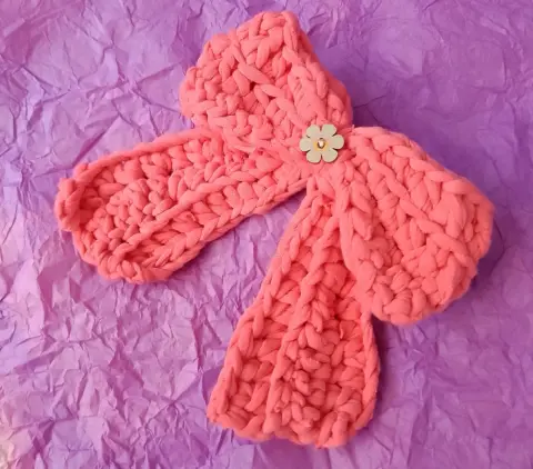 Moño coquette tejido a crochet con trapillo de algodón 17x13cm