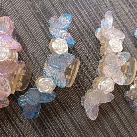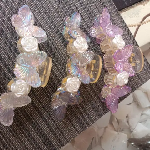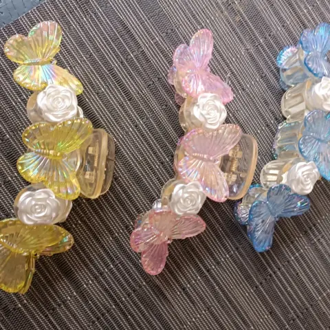 PAQUETE CON 5 PINZAS PARA CABELLO. Pinza de cabello con mariposas y flores, varios colores disponibles