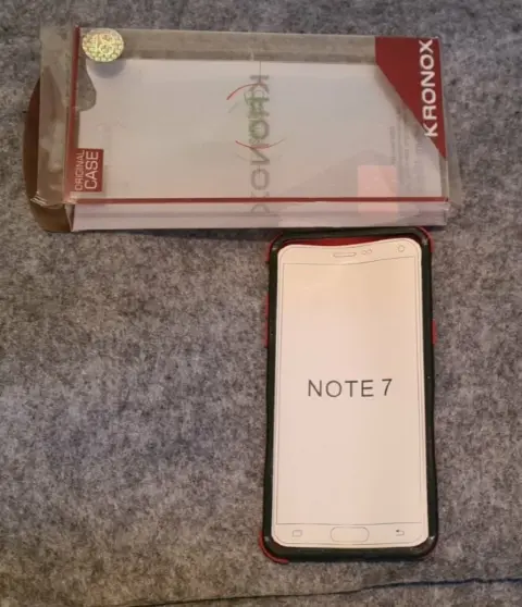 CASE RIGIDA PARA NOTE 7, NUEVA,COLOR NEGRO CON ROJO,MARCA KRONOX