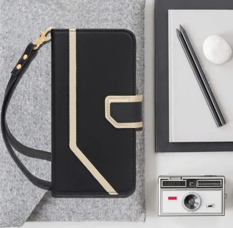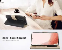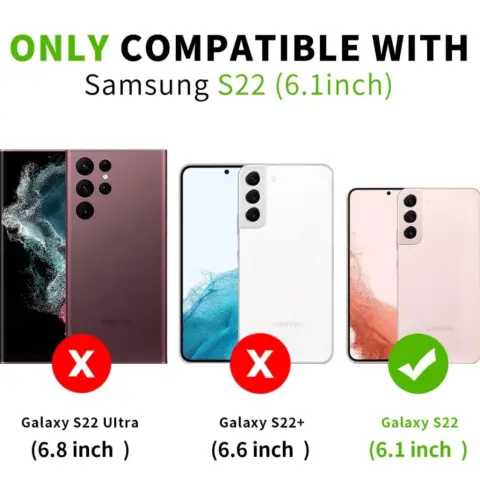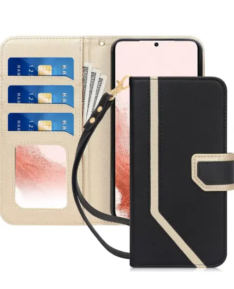FYY Funda para Galaxy S22 de 6.2 pulgadas, 5G, funda tipo cartera de piel con espejo y correa de muñeca para Samsung Galaxy S22 de 6.2 pulgadas, 5G, color negro