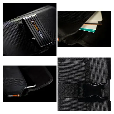 Funda para Cellular Tought Tested, Heavy-duty, clip de metal para proteccion de seguridad, operacion de una mano, cierre de iman, clip para pantalon que gira 360 Degreecon candado, mide 16,5 ancho x 9,5cm alto, nueva a estrenar con etiqueta en buen estado cosmetico.