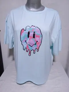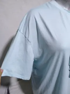 Básica color azul. La tela está súper cómoda,fresca, es color azul cielo, está hermosa.Amplia