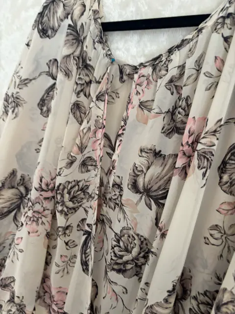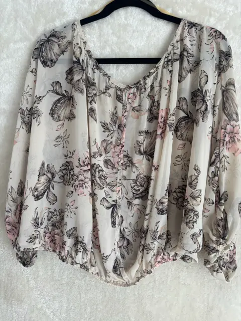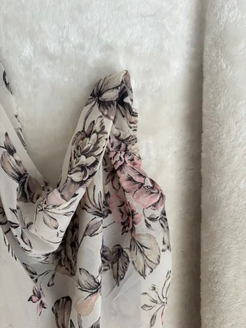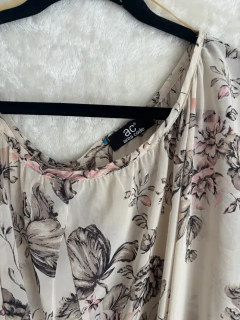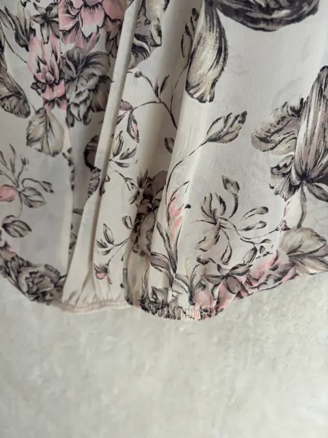 Blusa Area code beige. Color beige Talla MMaterial nylonDescripciónCi Blusa holgada, mangas largas tipo vampiro color base beige rosa y verde, figuras florales, cuello ojal, resorte al final de la blusa y de las mangas, avertura en la espalda que se disimulaEstado Usado una vez Precio 400Medidas en centímetros Ancho hombros no se marcan los hombros Cuelo 41 cm Busto 65 cmLargo 55 cm Largo mangas 51 cm resorte al final Resorte en la mangas 5 cm de largo