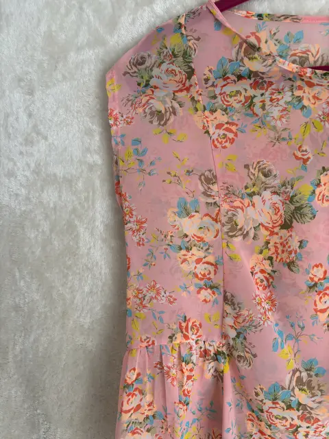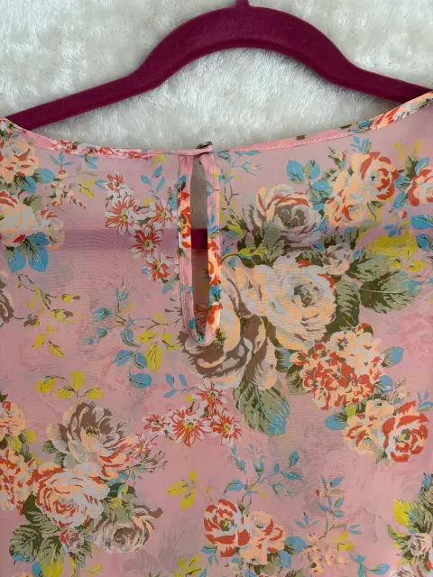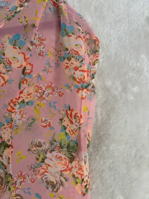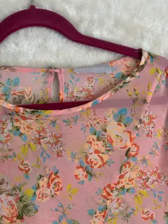 Blusa Area Code Rosa. Color Rosa mangas cortas Talla 9Material POLIESTERDescripciónBlusa holgada, mangas cortas de ojalincluido en el hombro, color base rosa con figuras convinacion de coles en las figuras florales azul, verde, corte holgándo, Botonéala en la espalda.Estado Usado una vez Precio 400Medidas en centímetros Ancho hombros 56 cmCuello ojal30 cm Escote cortoSin escoteBusto 52 cmLargo 60 cm Manga corta 3cm