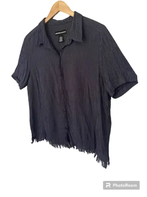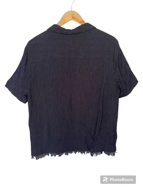 Blusa azul con barbas. Bonita blusa azul rayada, tela rayón Medidas aproximadas:De axila a axila 53 cm Largo 57 cm
