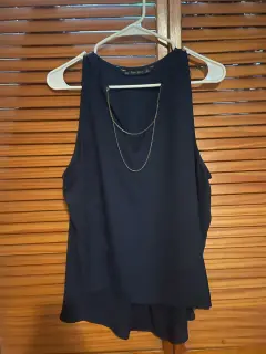 Blusa Zara Woman talla XL 👗Color: azul marino profundo 💙Diseño fluido y elegante con detalle de cadena dorada removible ✨Tela ligera, ideal para outfits casuales o de oficina.Estado: en excelente condición, poco uso 🙌📏 Medidas • Axila a axila: 52 cmUn básico versátil que combina con jeans, faldas o pantalones de vestir 🔥