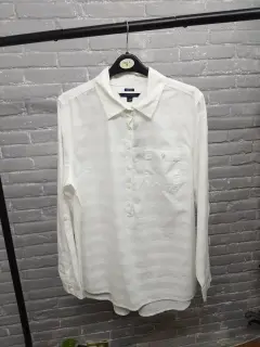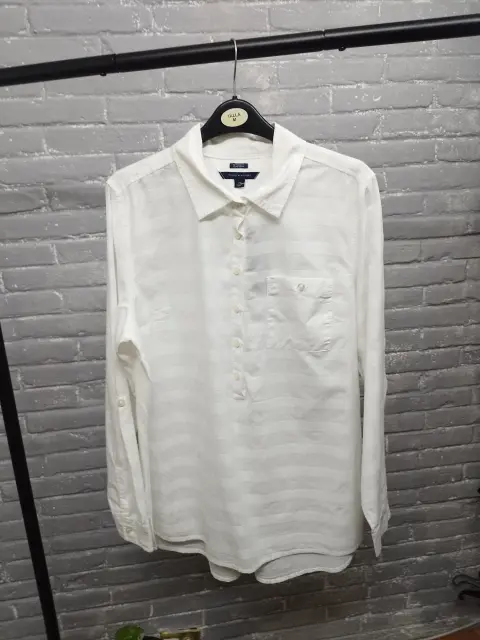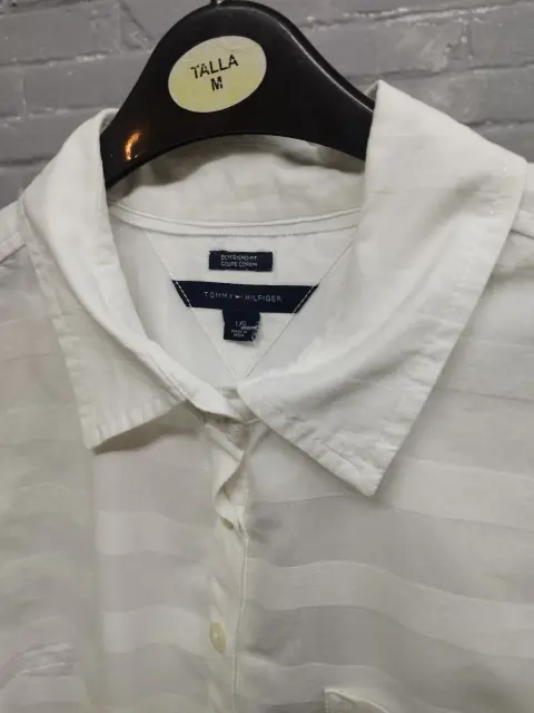 Padrísima blusa blanca manga larga que se arremanga, de algodón muy ligero, botones grabados es corte boyfriend . Talla L marca Tommy Hilfiger. Medidas: Axila axila; 57cm Largo: 70cm
