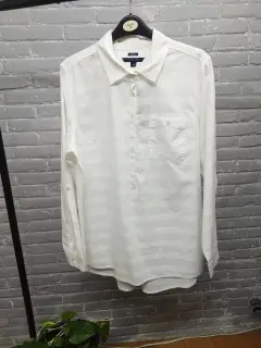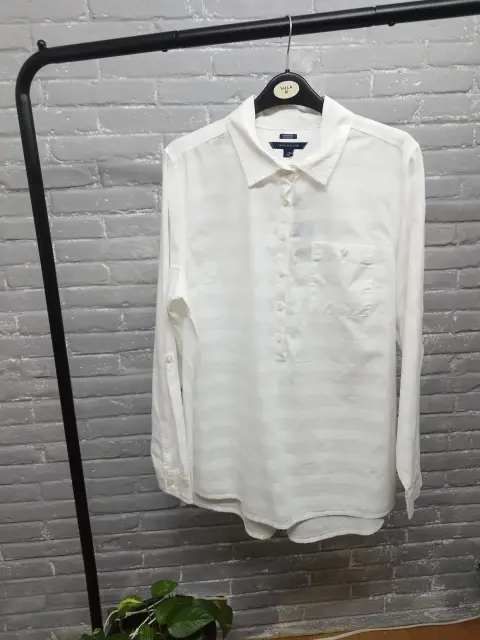 Blusa blanca manga larga. Padrísima blusa blanca manga larga que se arremanga, de algodón muy ligero, botones grabados es corte boyfriend . Talla L marca Tommy Hilfiger. Medidas: Axila axila; 57cm Largo: 70cm