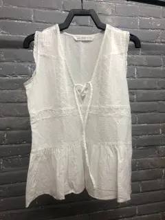 Blusa blanca sin manga Zara. Blusa elegante Zara Basic. Color : Blanco / beige. Talla : XS 46 cm axila a axila 55 cm largo . 33 cm hombro a hombro