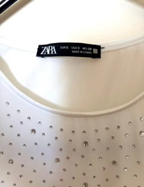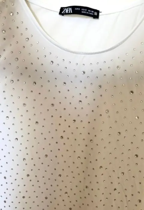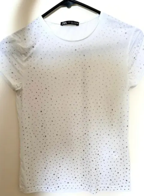 Hermosa blusa blanca con pedrería plateadaZaraTalla SPuesto una vez, en perfecto estado