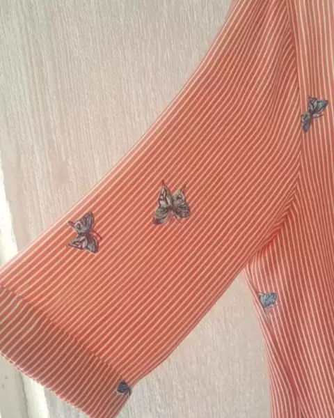 Blusa de rayas ,cruzada, cola de pato. Talla G , manga 3/4