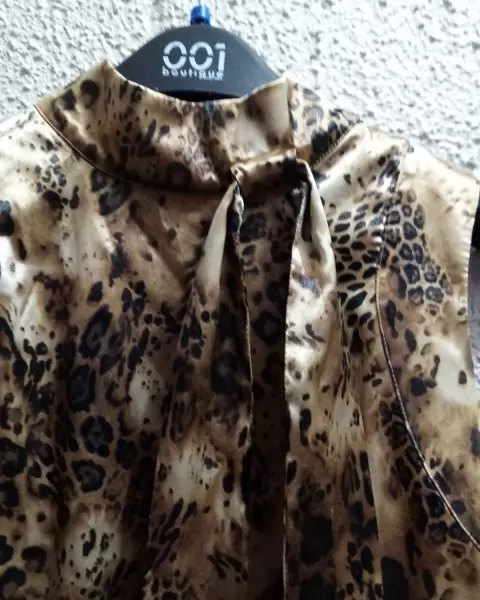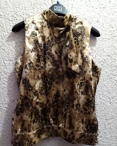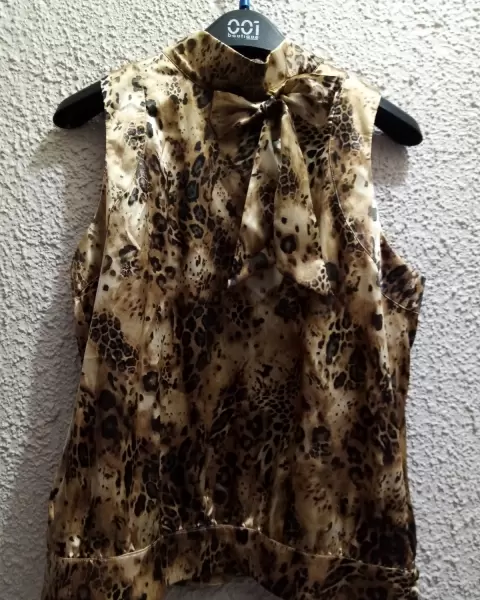 Blusa sin mangas de cuello alto animal print color café No tiene detalles Nunca se uso solo le quité la etiqueta.