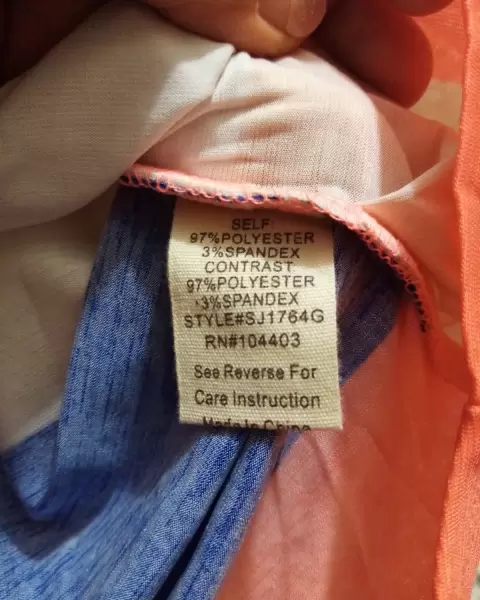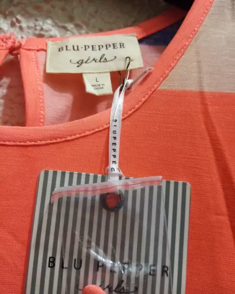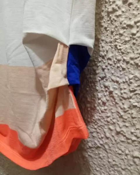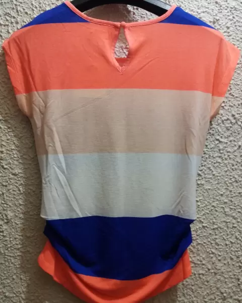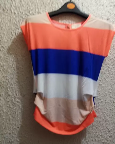 Blusa de cuello redondo y manga corta la etiqueta dice talla L pero viene para una talla S máximo talla M No tiene detalles