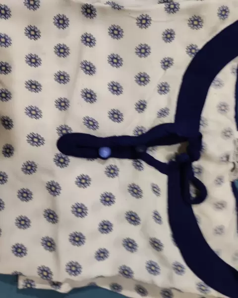 Blusa tela fresca color blanca con florecitas azules el cuello azul ni las mangas con resorte y adorno azul tela delgada no sé transparentan cuello redondo tela fresca nueva en condiciones nueva se le cayó la etiqueta