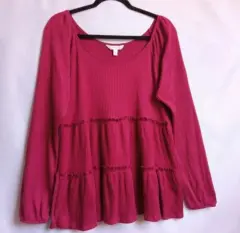 Blusa de manga larga LAUREN CONRAD Cuello redondo, tela de canales muy suavecita, holgada, super cómoda. Talla L Medidas tomadas por un solo lado: *Axila-Axila 51 cm *Largo 69 cm