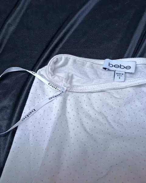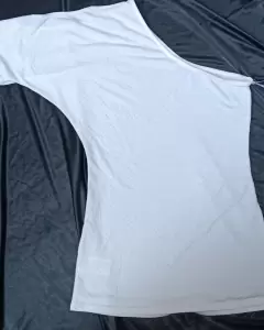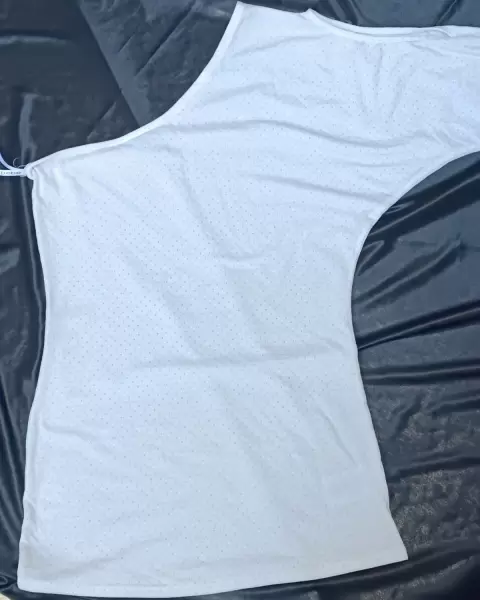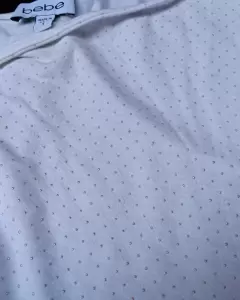BLUSA MARCA BEBE, 1 SOLA MANGA,DESCUBIERTO EL HOMBRO,CON PUNTOS DORADOS,TALLA S, 47 CM DE AXILA A AXILA, 68.5 DE LARGO ES STRECH