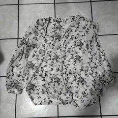 Blusa blanca con diseño, es larga y de manga larga. Diseño de pajaros y jaulas