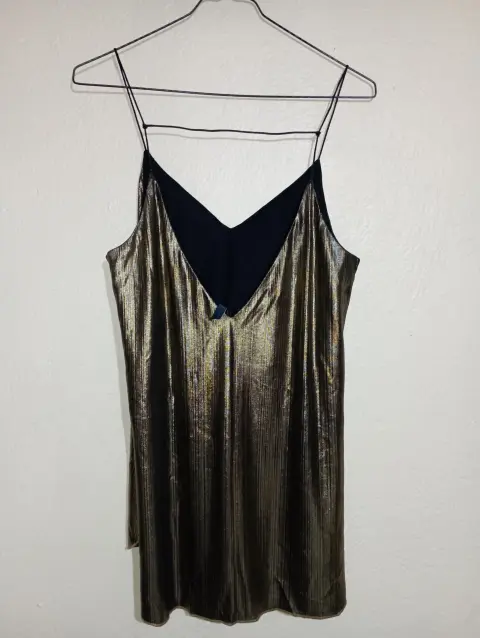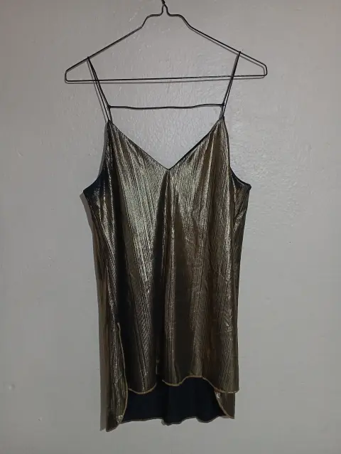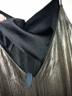 Blusa Elegante Dorada. Bella blusa:• Dorada, efecto metálico • Escote en V• Tirantes, sin manga• Talla Grande• Marca C&A• Forro en la parte del pecho