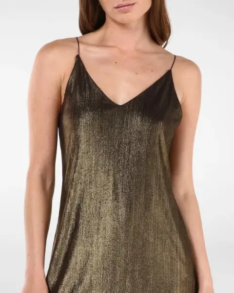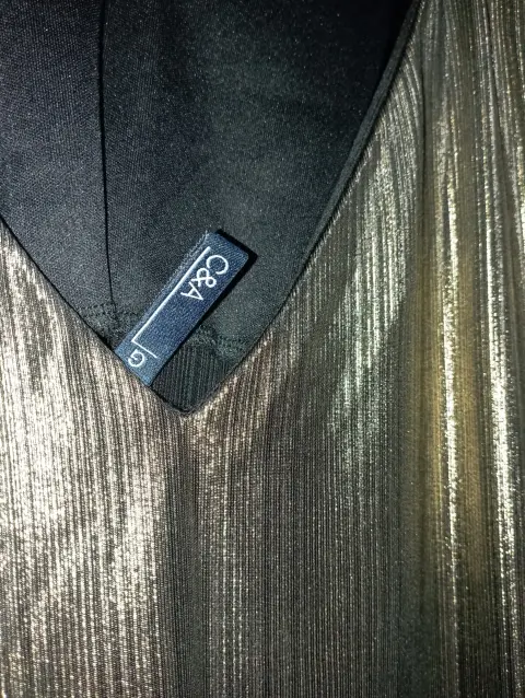 Bella blusa:• Dorada, efecto metálico • Escote en V• Tirantes, sin manga• Talla Grande• Marca C&A• Forro en la parte del pecho