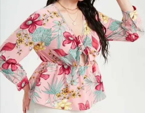 Blusa floral nudo delantero. Blusa pleno menudo delantero con estampado floral multicolor talla 2XL nueva cómoda lista para usarse