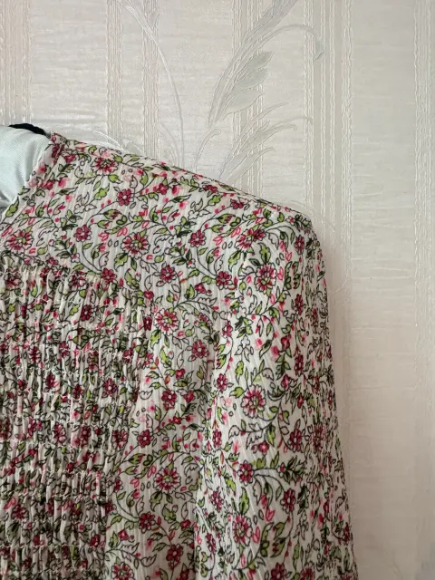 Todo está en los detalles! Bellísima blusa con detalles de flores pequeñas y un corrugado para dar forma al frente. NUEVA!! Perfecta con un jean blanco. Más opciones en mi clóset.