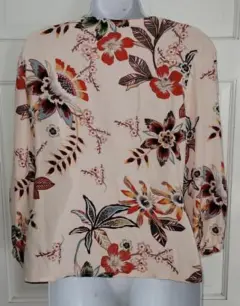 Blusa formal flores. La blusa de la imagen es una blusa cruzada (o wrap top) con un estampado floral. Estas tiene un escote en V y mangas tres cuartosEstoy abierta a recibir ofertas