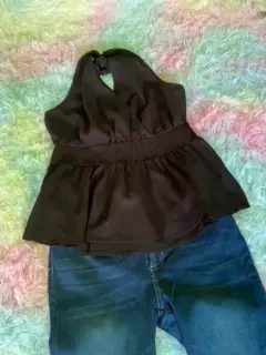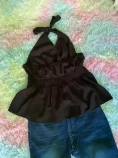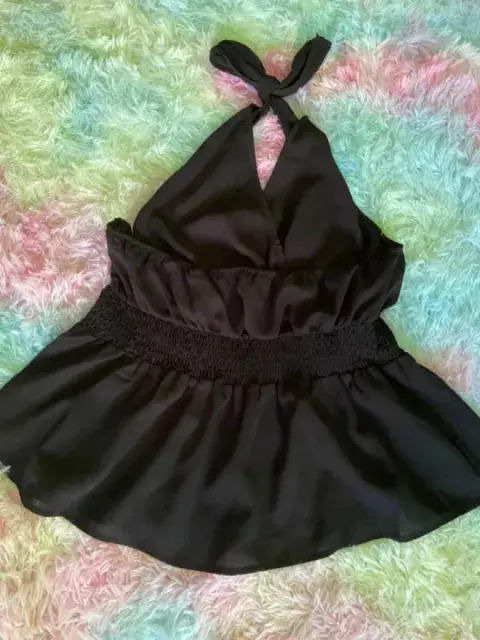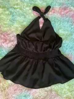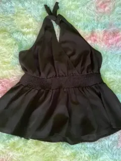 Bonita blusa negra talla Curvy 1XL, sin espalda, se amarra en el cuello y tiene elástico en la cintura, la última foto 📸 es para referencia del modelo. Es nueva la compre para un evento pero no la use.
