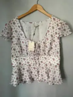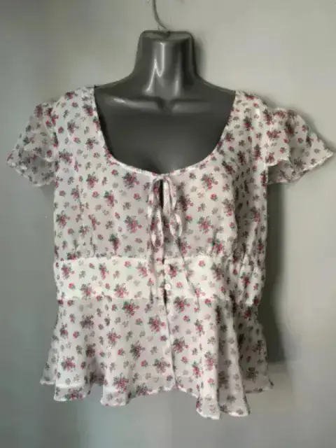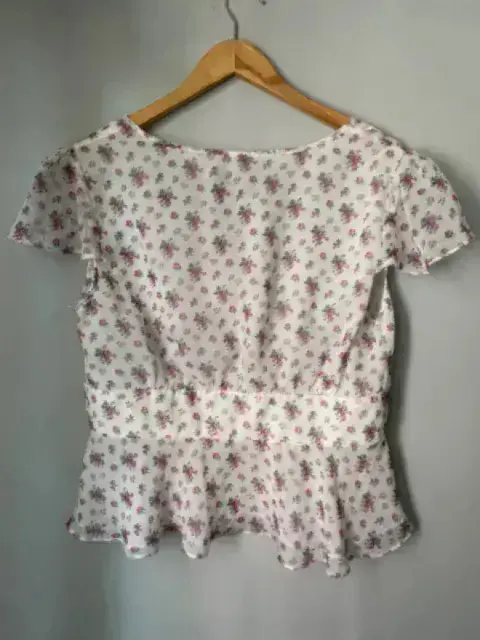 Blusa ligera floreada. Bonita blusa blanca con estampado de flores es ligera.La talla es XL pero viene reducida a una M o L Medidas aproximadas:De axila a axila 56 cmCintura 44 cmLargo 57 cm