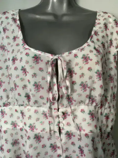 Bonita blusa blanca con estampado de flores es ligera.La talla es XL pero viene reducida a una M o L Medidas aproximadas:De axila a axila 56 cmCintura 44 cmLargo 57 cm