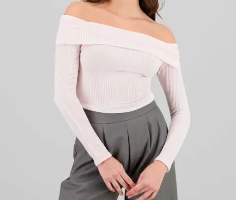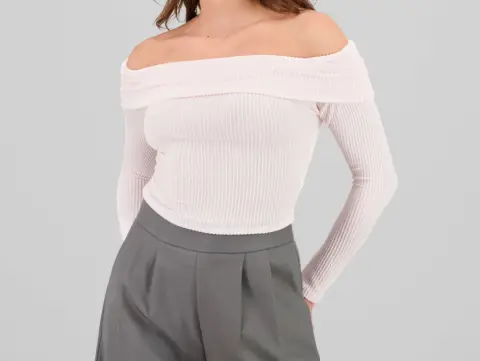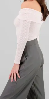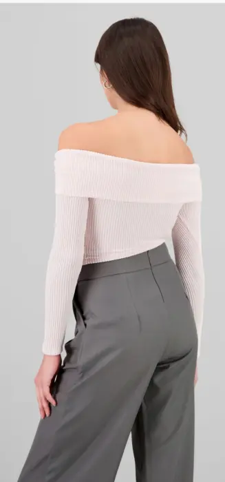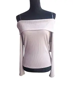 BLUSA CON HOMBRO DESCUBIERTO, TALLA M, MANGA LARGA,COLOR GRIS, MIDE HOMBRO A HOMBRO 50 CM, AXILA A AXILA 47 CM,LARGO 45.5 CM, 91% POLIÉSTER, 9 % SPANDEX, MARCA HAUTE MONDE