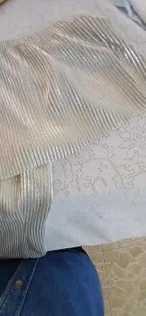 Blusa plisada de hombros descubiertos. Una blusa perfecta para lucir espectacular en tu próxima ocasión especial! Este top de la marca a.n.a. "a new approach" es de un elegante tono dorado pálido o champagne. Su diseño de hombros descubiertos con un gran volante la hace muy femenina y estilizada.La tela tiene un hermoso efecto plisado y un acabado metálico que la hace ideal para brillar. Puedes combinarla con pantalones de vestir, una falda lápiz o incluso jeans para un look casual-chic. Está completamente nueva y con sus etiquetas puestas. Talla XL