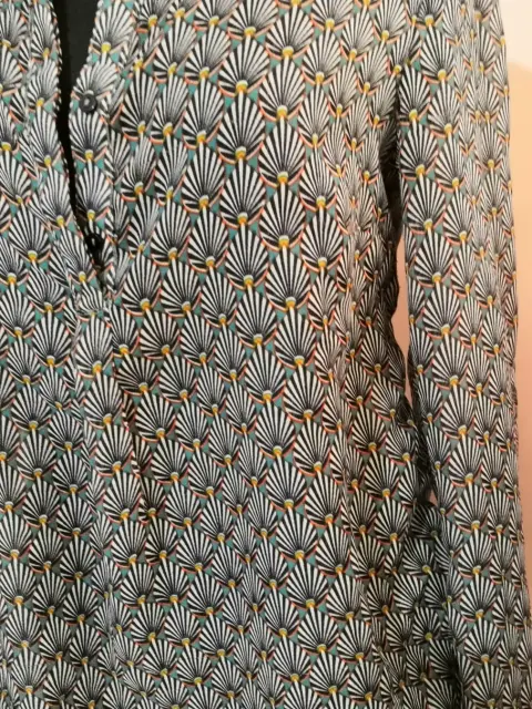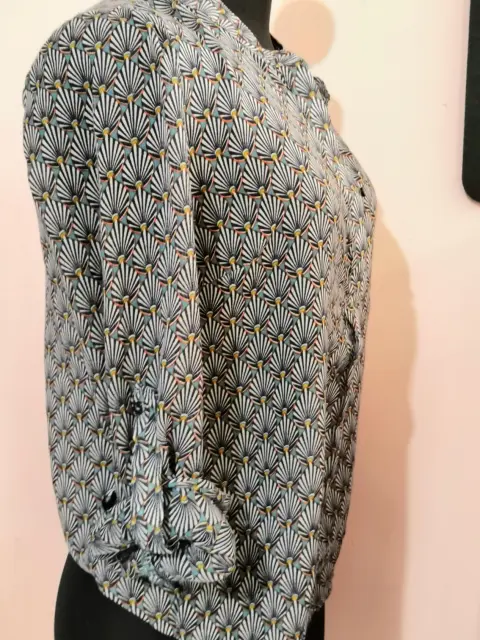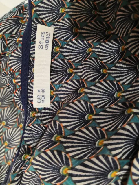 Blusa Sfera cuello redondo con escote en V tela semi transparente, ligera tipo algodón tejido plano, es fresca, ningún detalle apenas se uso.una vez, la manga se ajusta a 3/4 con el botón