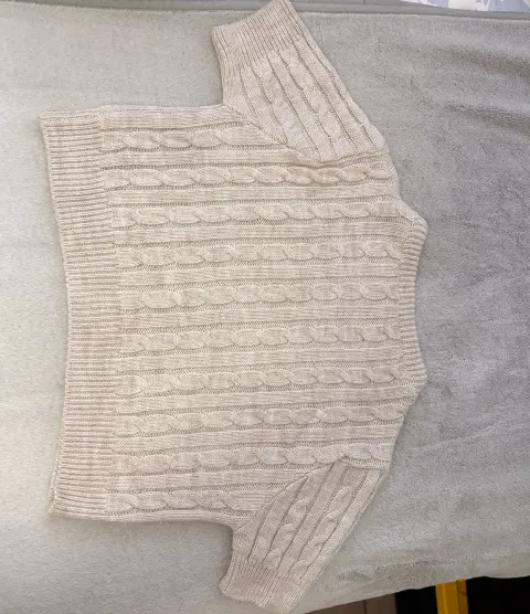 Blusa tejida, talla S y color beige. Queda flojita y se encuentra sin detalles. No se usó más de una vez.