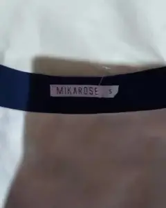 Blusa tela tipo seda talla S. Blusa color hueso, parte de arriba tipo seda con fondo de licra y algodón, muy cómoda, el bies en el cuello es azul marino y tiene un pequeño moño, no se transparenta