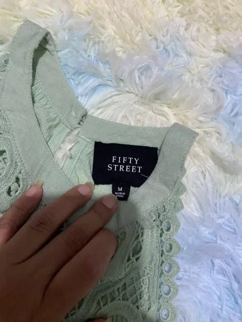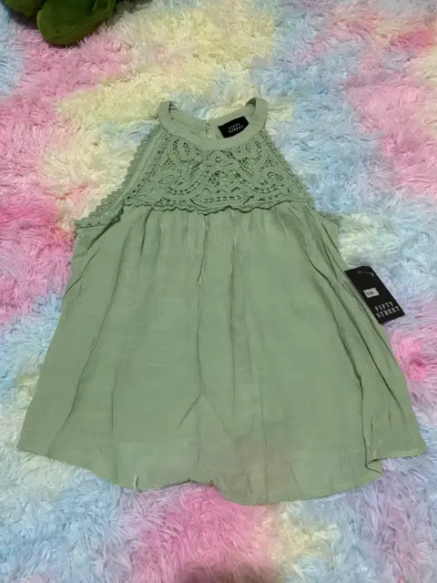 Blusa tipo bluson Fifty Street. Hermosa blusa sin manga nueva con etiqueta, color verde menta es tipo blusón y tiene una hermosa aplicación la parte del busto, la tela es fresca ideal para esta temporada de calor, talla mediana, si te interesa en una talla mas grande también tengo una L.