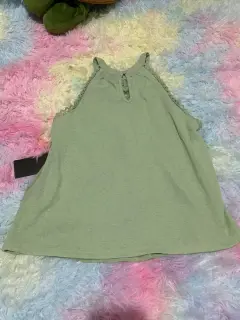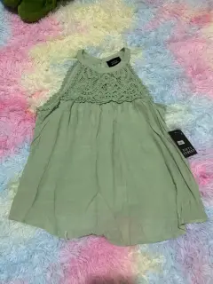 Hermosa blusa sin manga nueva con etiqueta, color verde menta es tipo blusón y tiene una hermosa aplicación la parte del busto, la tela es fresca ideal para esta temporada de calor, talla mediana, si te interesa en una talla mas grande también tengo una L.