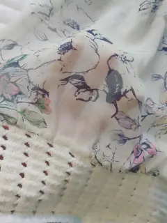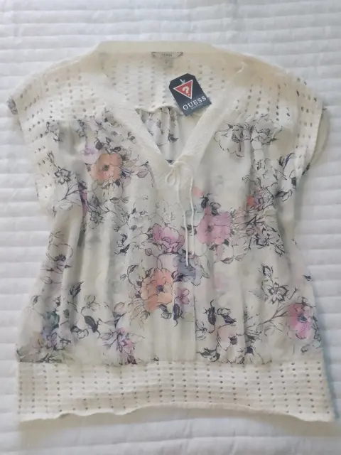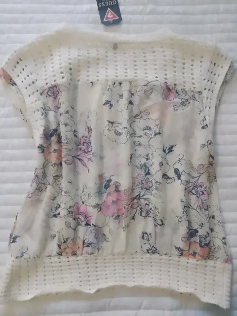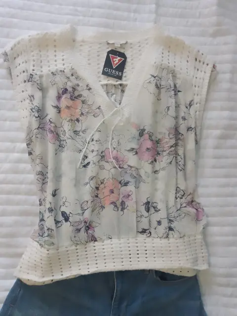 Blusa transparente flores. Blusa blanca transparente con estampado de flores, hombros y parte baja es como tejido,