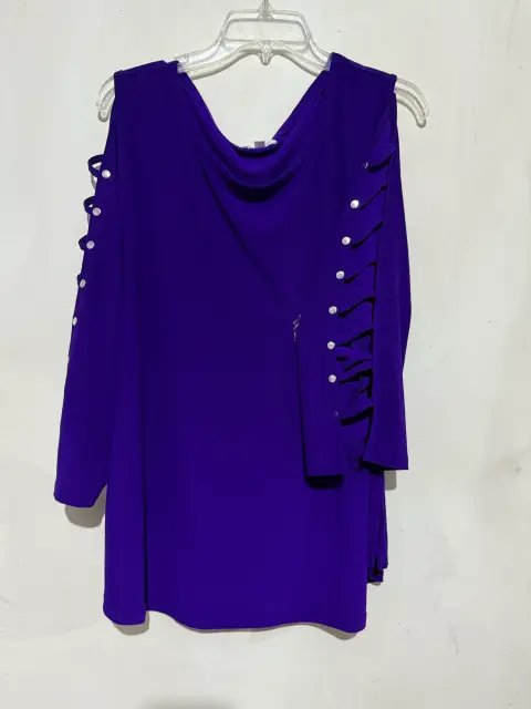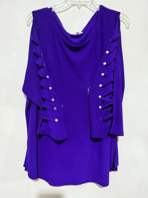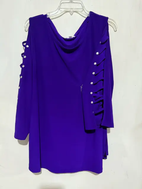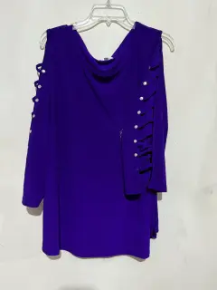 Blusa color uva con manga larga y apertura en las mangas y detalles con brillos  talla 3X mide 74cm de largo, 63 cm de ancho y 50 cm de hombro a hombro