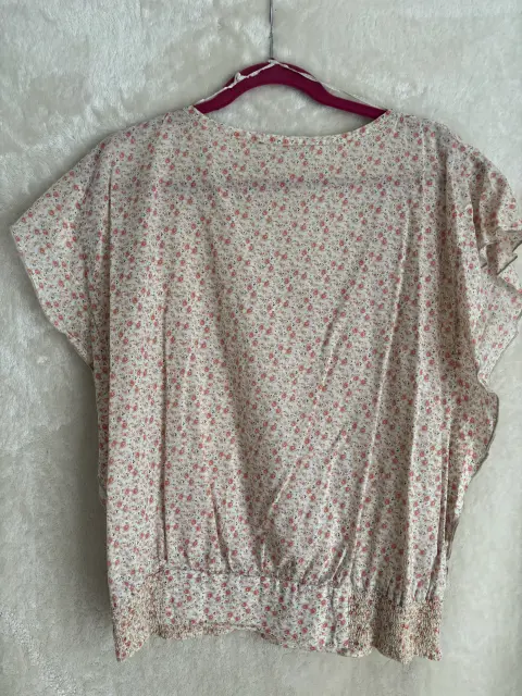 Blusa Zara beige con flores ocre. Color beige con flores ocre Talla MMaterial Algodón y poliesterDescripciónBlusa corte holgado, con resorte al final mangas cortas tipo vampiro, color base Beige con figuras de rosas rocre pequeñas , cuello redondo, con aplicación de encaje beige, 4 botones Estado Usado una vez Precio 200Medidas en centímetros Ancho hombros 48 cmCuello Redondo 26 cm Escote 20 cmBusto 50 cmLargo 65 cm Mangas cortas10 cm