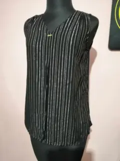 Blusas talla rayas doradas. Blusa con líneas tipo bordado dorado talla M da entre talla 30-32 la parte trasera es tipo algodón y la delantera es tipo seda ligera pero no transparente