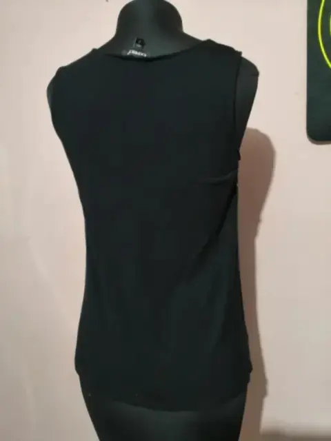 Blusa con líneas tipo bordado dorado talla M da entre talla 30-32 la parte trasera es tipo algodón y la delantera es tipo seda ligera pero no transparente