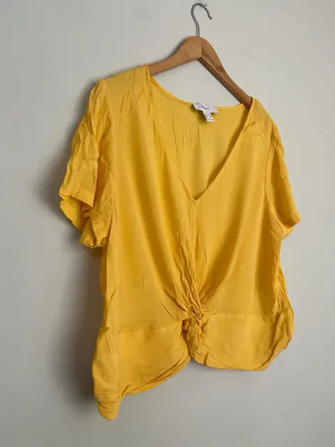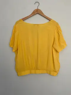 Top amarillo con tipo nudo en el centro. La tela es ligeraMedidas aproximadas:De axila a axila 62 cmLargo47 cm