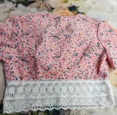 Bonito crop top para dama, bordado en la parte de abajo y enfrente, cierre del lado derecho abajo en la parte del torso.