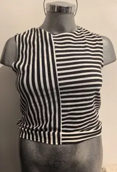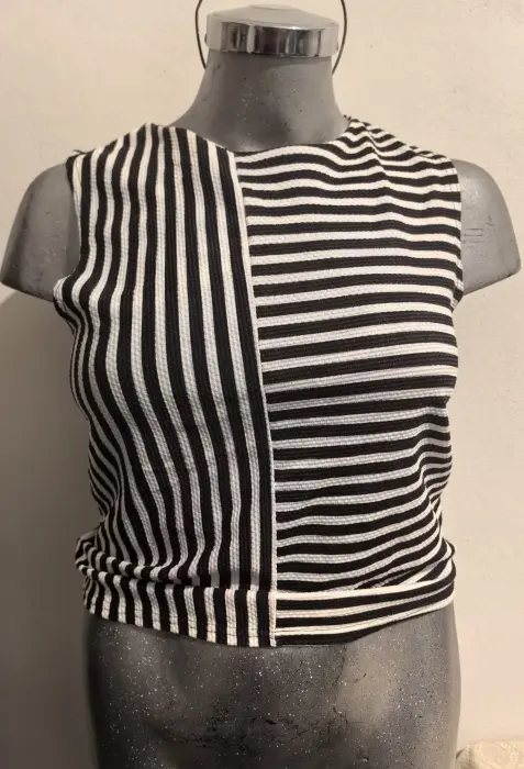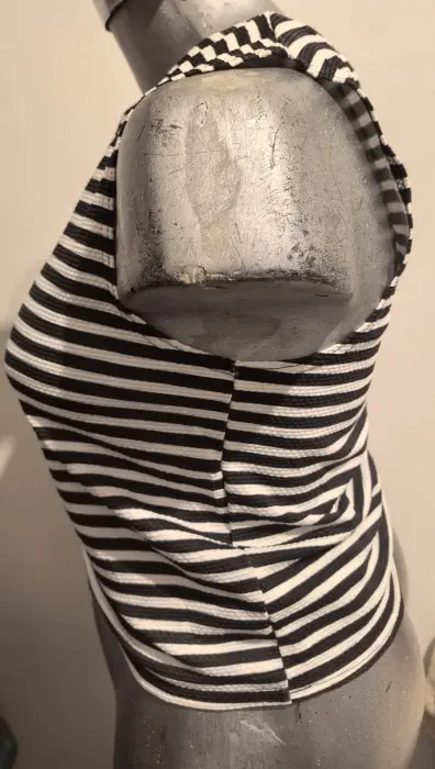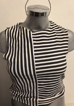 Crop top de rayas NEW LOOK. Crop top marca NEW LOOK, talla 12. Cuello redondo, sin mangas. Tiene un boton atrás del cuello.