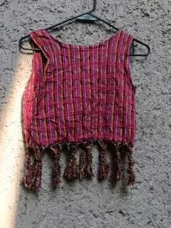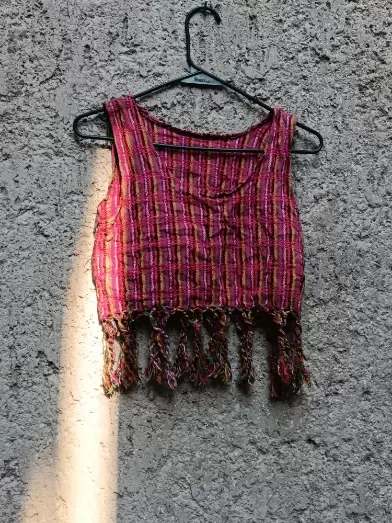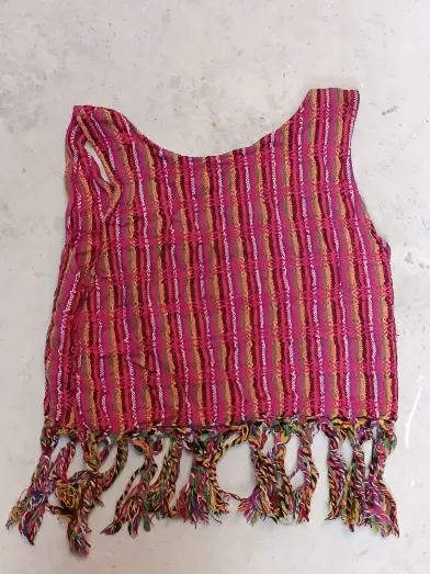 CROP TOP, CON BARVAS MULTICOLOR DE USO, 32 CM DE HOMBRO A HOMBRO,41 CM DE AXILA A AXILA,36 CM DE LARGO SIN CONTAR LAS BARBAS QUE MIDEN 13 CM, SIN DETALLES,TALLA S