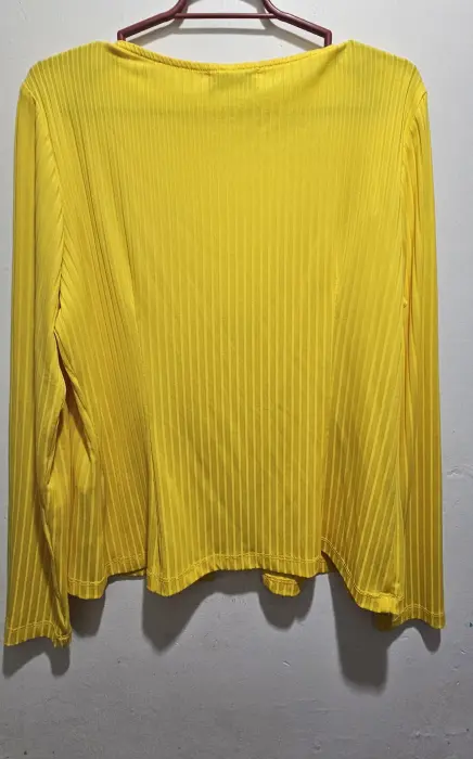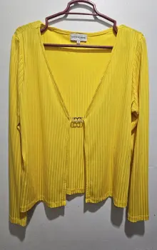 Linda blusa 👚. Linda blusa ligera en color amarillo con abertura al frente, manga largs, ideal para poner con una blusa abajo.
